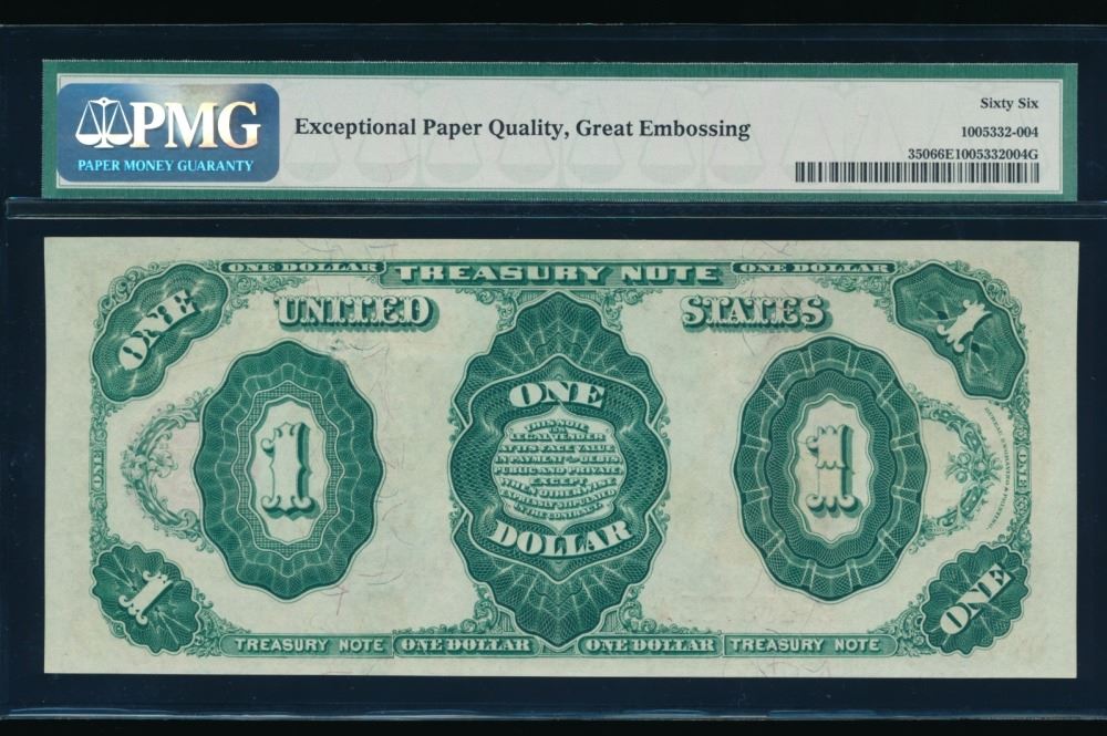 One 1891 $1 Treasury Note PMG 66EPQ.
