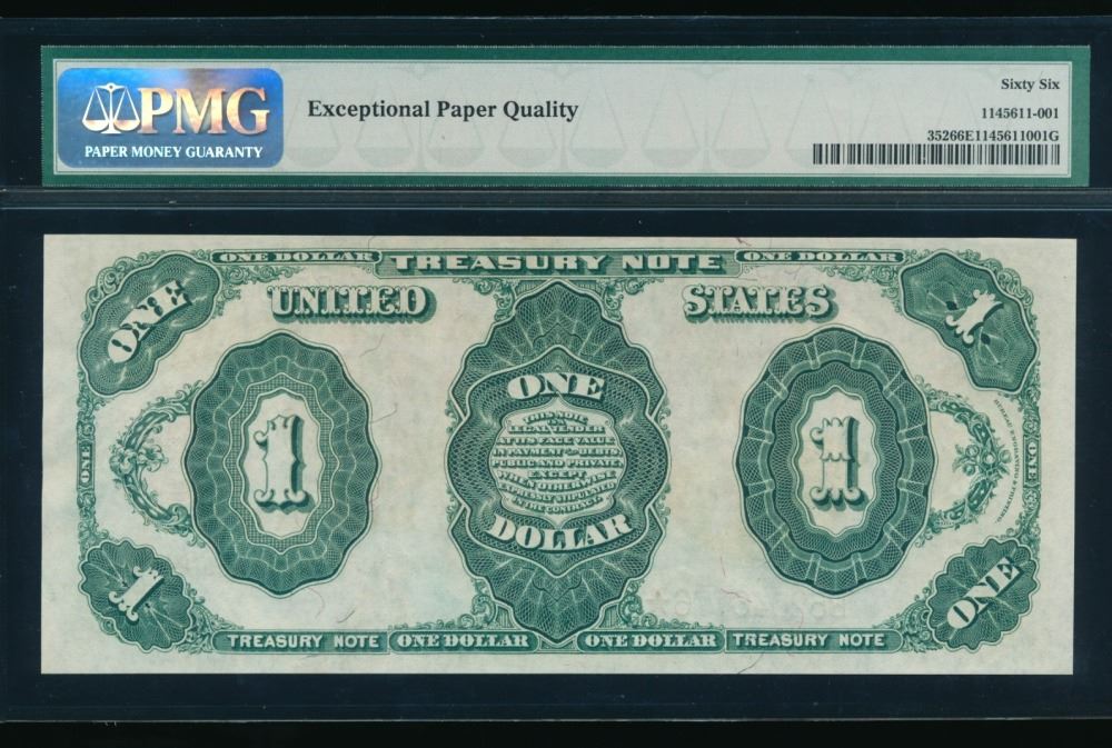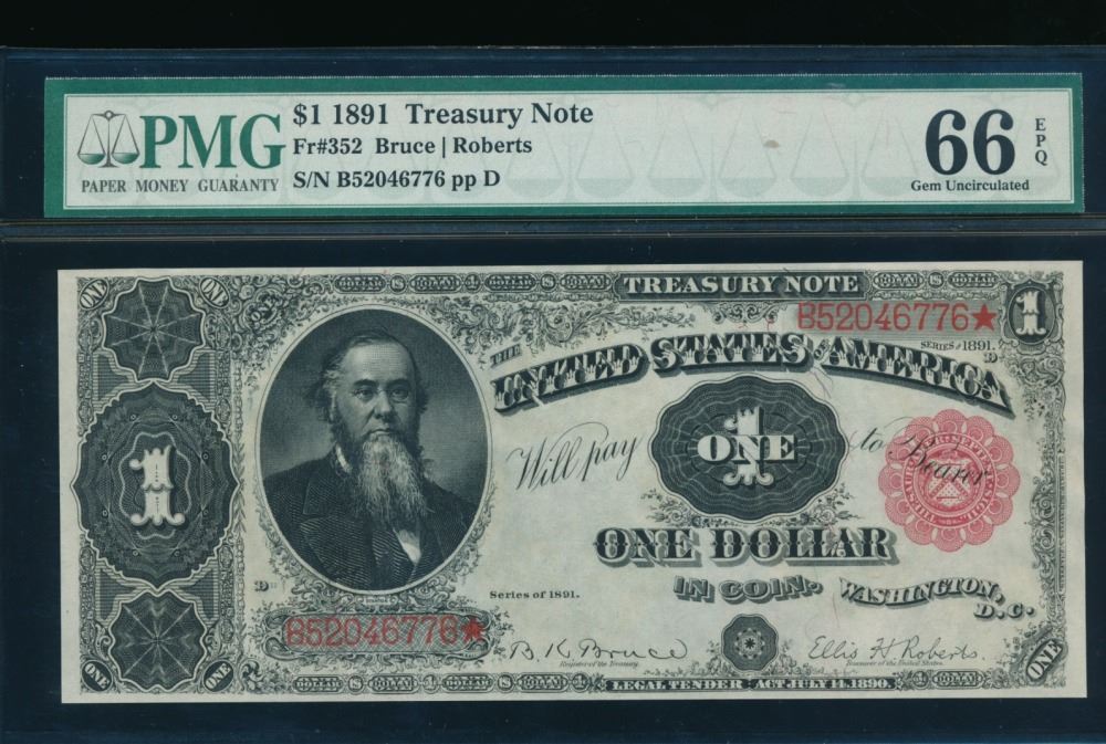 One 1891 $1 Treasury Note PMG 66EPQ.