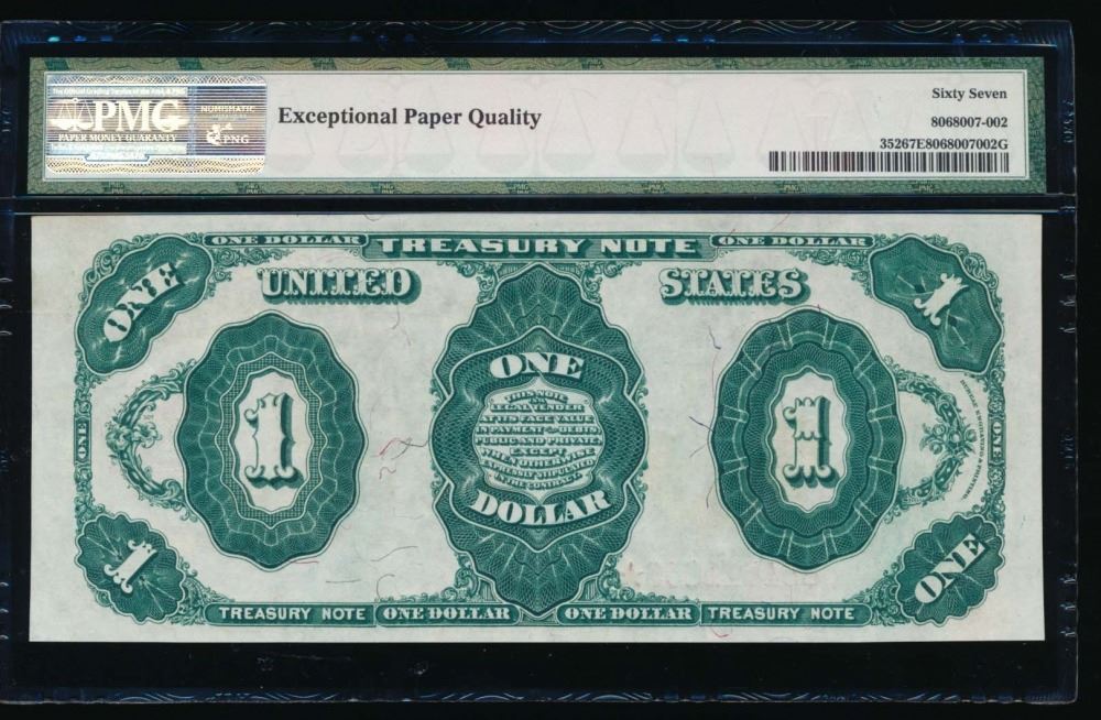 One 1891 $1 Treasury Note PMG 67EPQ.
