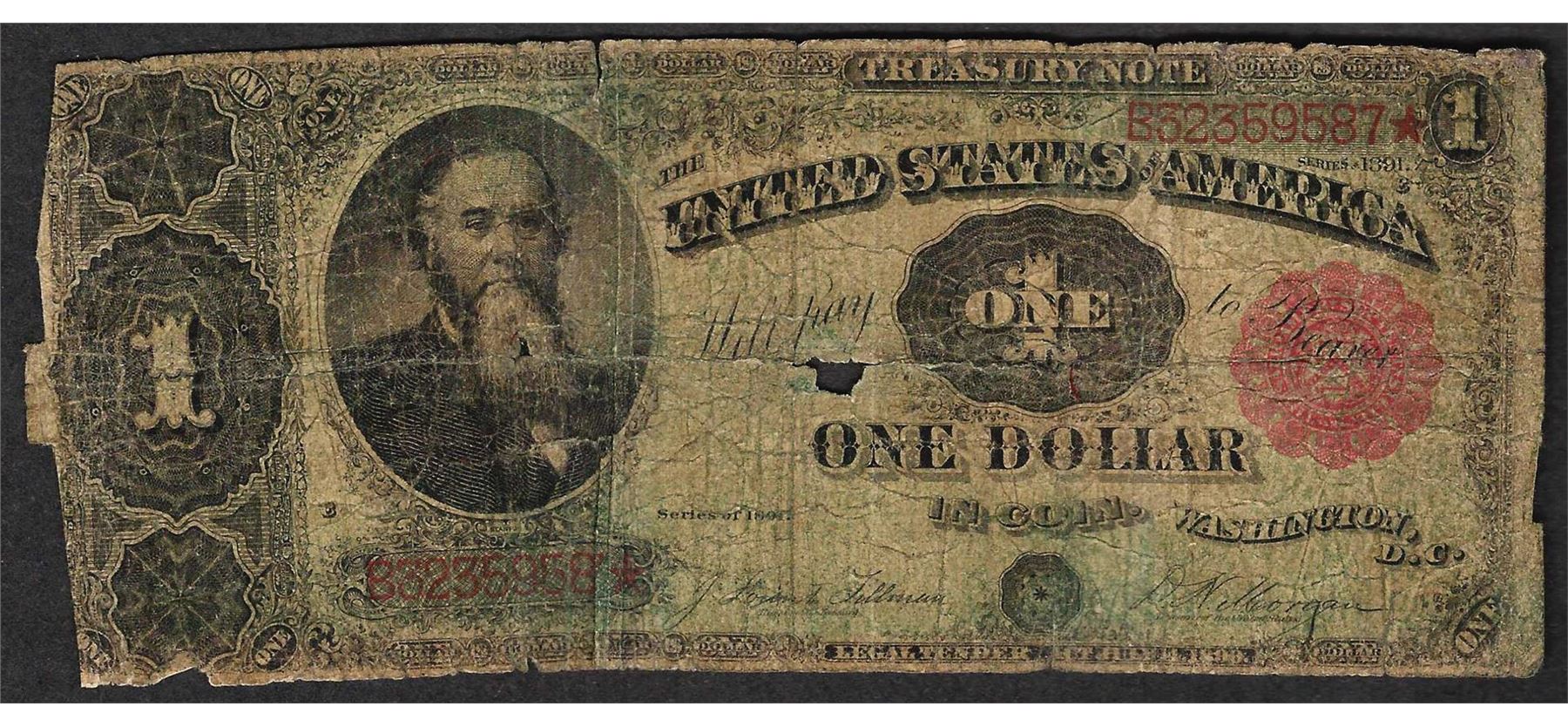 One 1891 $1 Treasury Note.