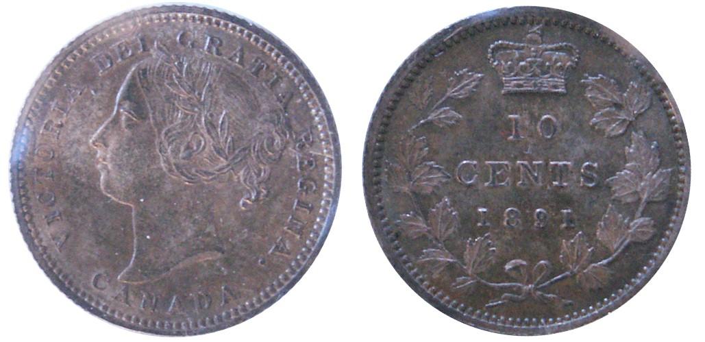 1891 10¢ 21Lvs ICCS MS64. Intense golden shades. Excellent strike with clean fields and nice surfaces.