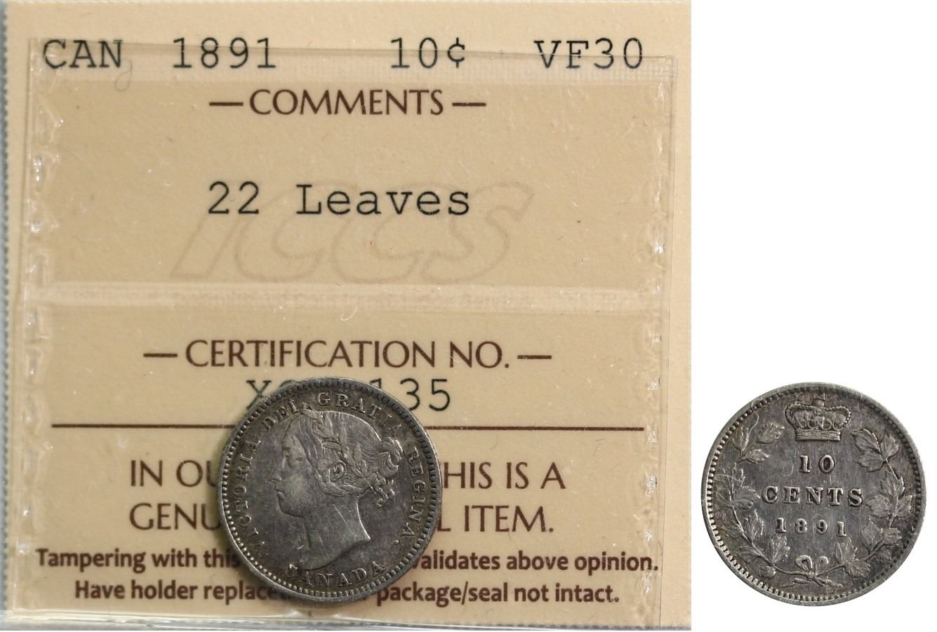 1891 10¢ "22 Lvs" ICCS Choice Very Fine-30