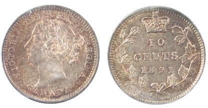 1891 10¢ 22 Lvs ICCS MS64. Superb shades and underlying lustre.