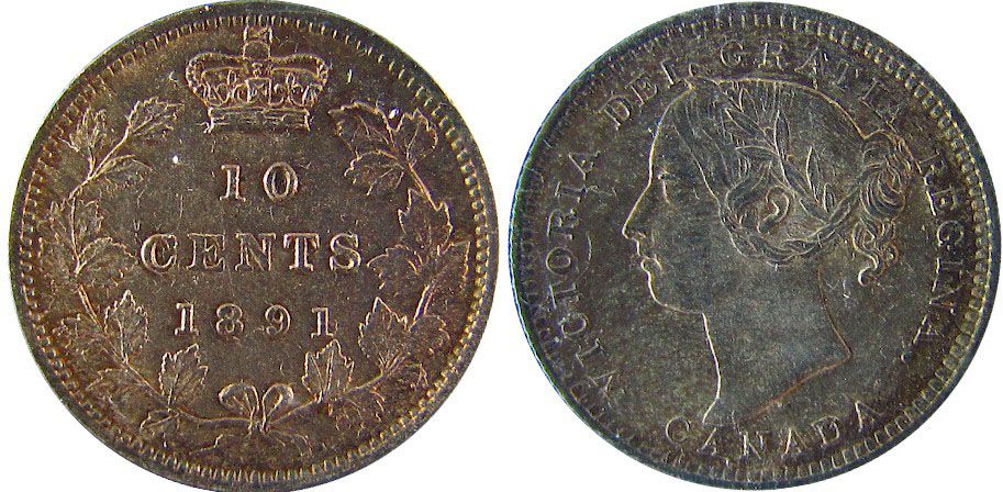 1891 10¢ 22 Lvs ICCS MS64. Superb shades and underlying lustre.
