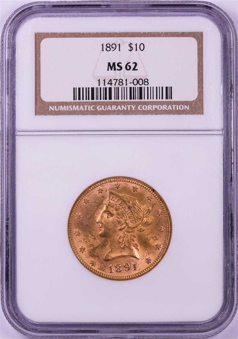 One 1891 $10 Liberty Head Eagle Gold Coin NGC MS62.