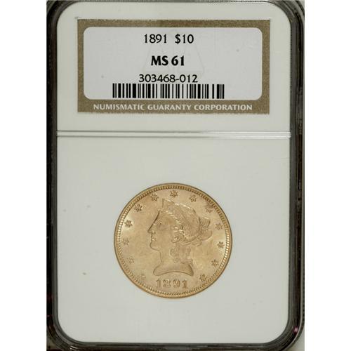 1891 $10 MS61 NGC. NGC Census: (195/170). PCGS Pop