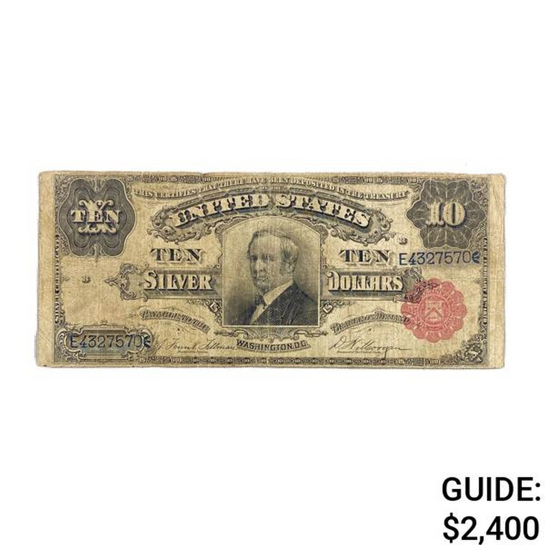 1891 $10 RED SEAL TOMBSTONE SILVER CERT. NOTE