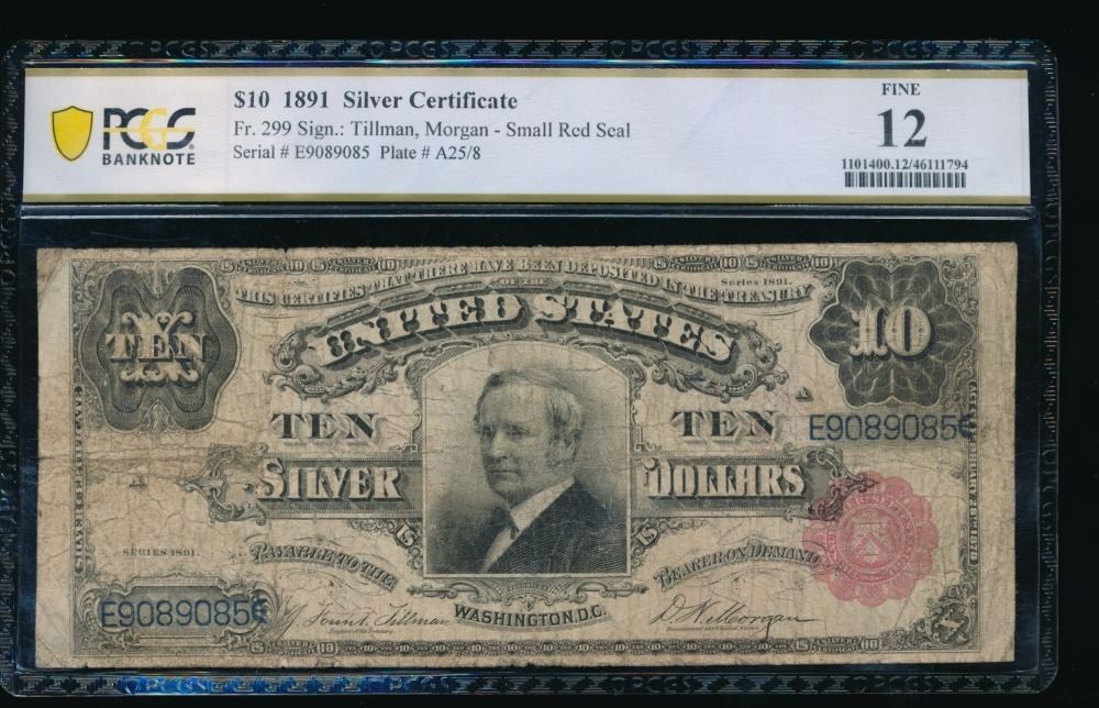 One 1891 $10 Tombstone Silver Certificate PCGS 12.