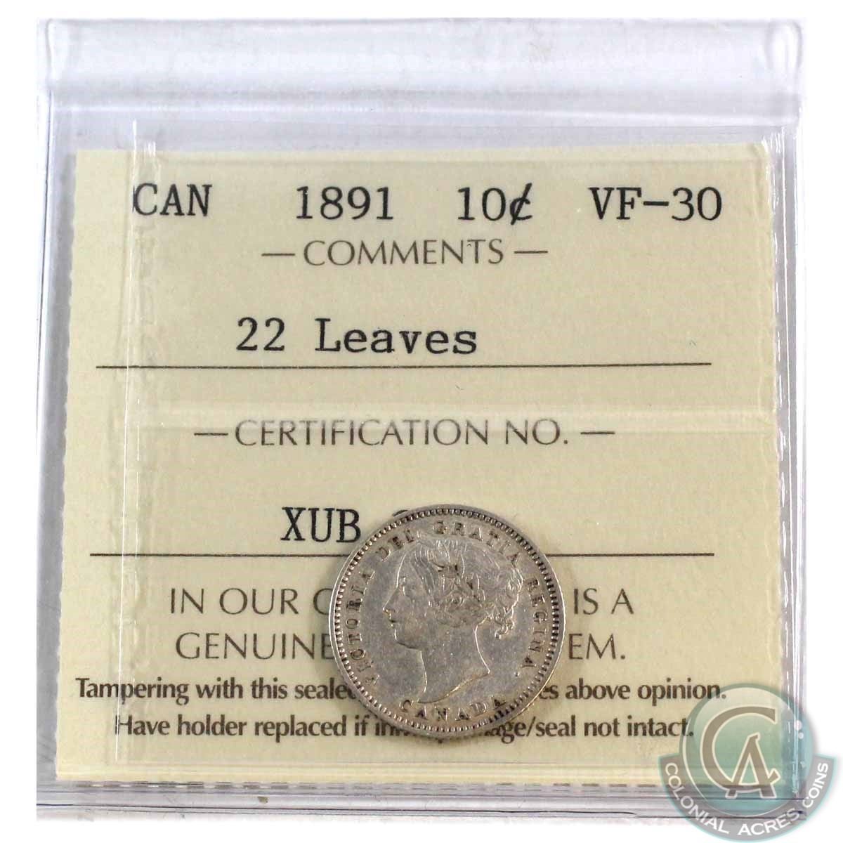 1891 10-cent 22 Leaves ICCS Certified VF-30