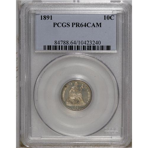 1891 10C PR64 Cameo PCGS. Moderately reflective beneat