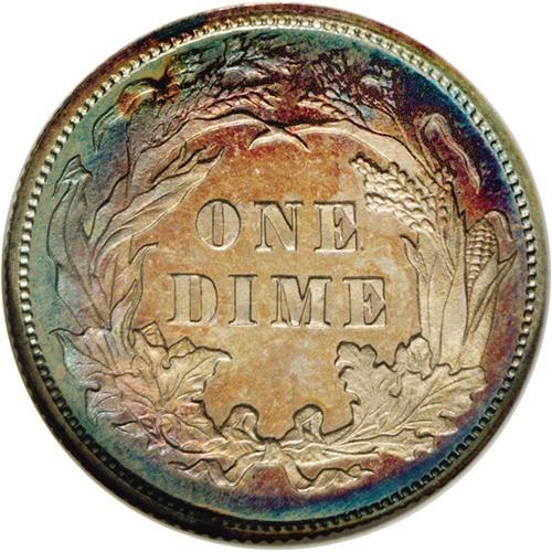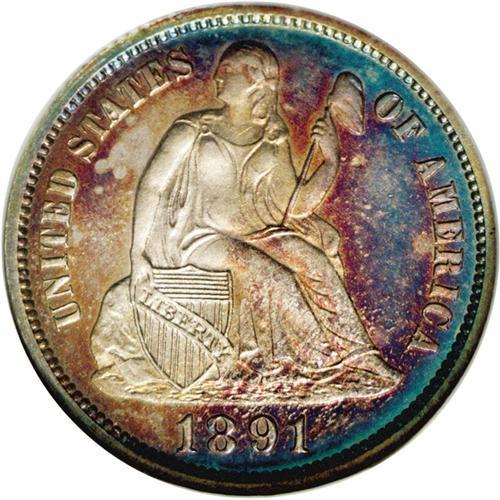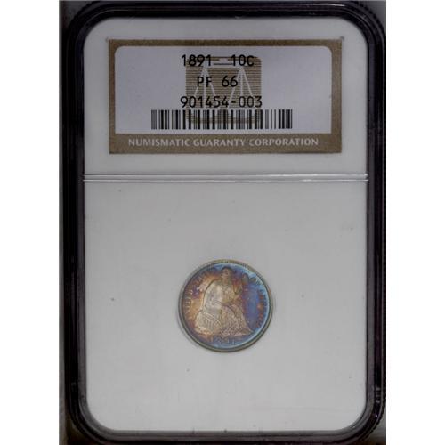 1891 10C PR66 NGC. Lavishly deep toning, in shades of 1891[10C] PR66 NGC.