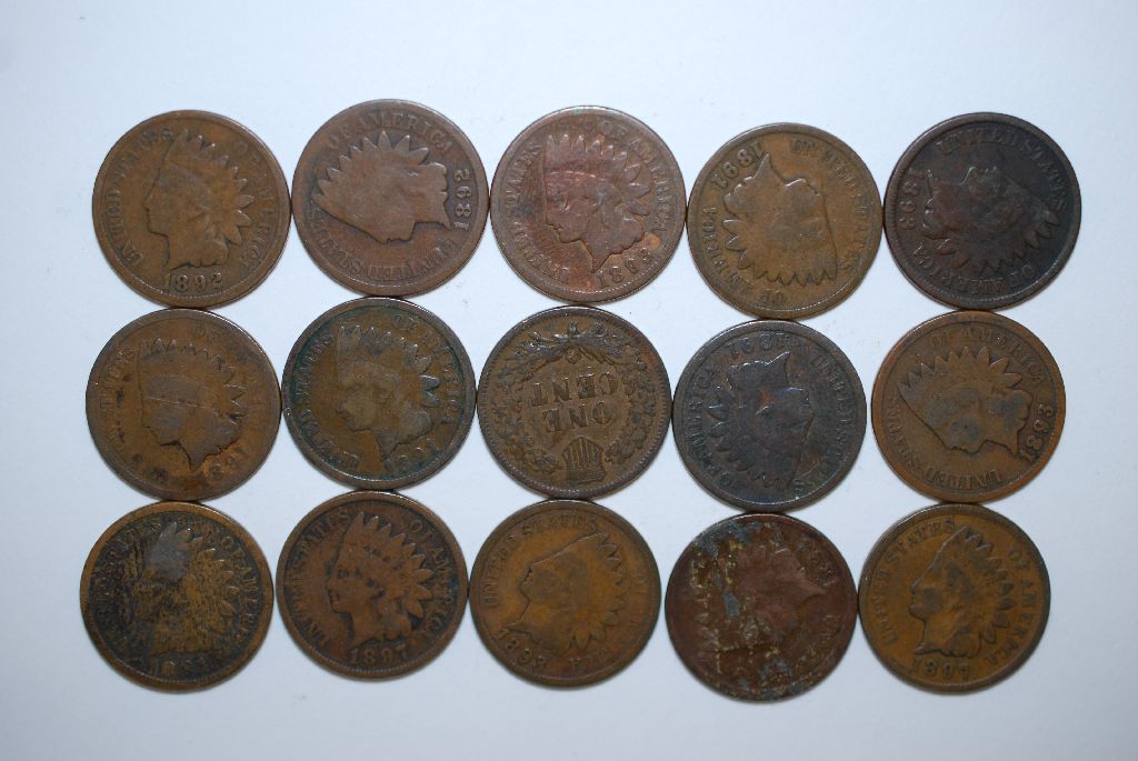1891-1897 Indian Head One Cent; Various Conditions; Lot of 15; EST. $10-25