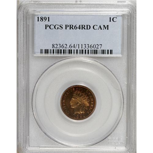 <B>1891 1C PR64 Red Cameo PCGS.</B></I> This needle-sharp cent exhibits pleasing contrast. The obverse is orange-red, and the reverse is yellow-gold. Scattered obverse carbon decides the grade. The 89 in the date is repunched. Population: 2 in 64 Red Cameo, 3 finer (2/07).<BR><BR><b>Shipping:</b> Coins & Currency (<a target="_blank" href="http://www.heritageauctions.com/common/shipping.php">view shipping information</a>) <BR><BR><B>