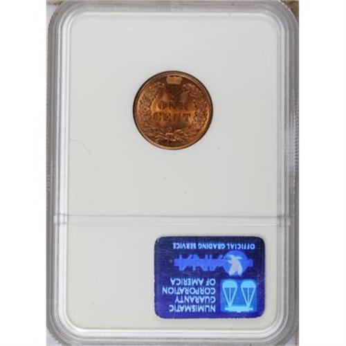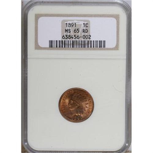 <B>1891 1C MS65 Red NGC.</B></I> A vibrant orange-red Gem that only shows a couple of tiny specks of carbon at the margins and a pair of small marks in the left obverse field. Well-defined overall, though slight weakness is noted on the tips of the feathers. NGC has graded just three finer pieces with Red surfaces (5/07).<BR><BR><b>Shipping:</b> Coins & Currency (<a target="_blank" href="http://www.heritageauctions.com/common/shipping.php">view shipping information</a>)