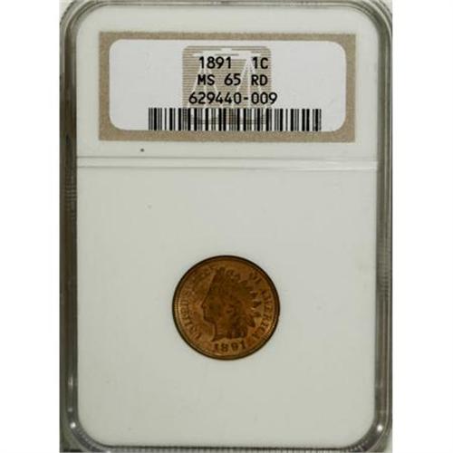 <B>1891 1C MS65 Red NGC.</B></I> Rich pumpkin-orange surfaces are well detailed and show faint signs of mellowing on the obverse. Only a elite few Gem Red examples survive from an original mintage of more than 47 million pieces. Census: 33 in 65, 3 finer (10/07).<BR><I>From The Santa Fe Collection, Part Two.</B></I><BR><BR><B>Coin Engraver:</B> James B. Longacre<BR><BR><b>Shipping:</b> Coins & Currency (<a target="_blank" href="http://www.heritageauctions.com/common/shipping.php">view shipping information</a>)