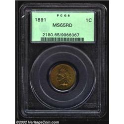 1891 1C MS65 Red PCGS. There is no doubt in our minds that this lovely Indian Cent is completely original. Rich orange-red color yields to deeply set, green-gold undertones on the obverse when the coin rotates away from the light. The strike is razor sharp in all but a few isolated areas, and the frosty textured features are virtually blemish-free. A beautiful example irrespective of date that would make a lovely addition to a Gem quality type set.From the Joseph P. Gorrell Collection. Important notice: We expect to be auctioning lots at the rate of 200-250 per hour. Sometimes eBay Premier live bid software cannot keep up with that pace, so we strongly recommend that you place a realistic proxy bid now as insurance to avoid disappointment. Also please note that all Heritage/CAA lots purchased through eBay Premier carry a 20% Buyer's Premium. Please make sure you read the Terms and Conditions.