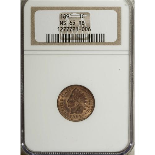 <B>1891 1C MS65 Red and Brown NGC.</B></I> NGC Census: (128/10). PCGS Population (17/0). Mintage: 47,072,352. Numismedia Wsl. Price for NGC/PCGS coin in MS65: $272. (#2179)<BR><BR><b>Shipping:</b> Coins & Currency (<a target="_blank" href="http://www.heritageauctions.com/common/shipping.php">view shipping information</a>)