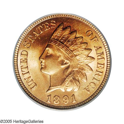 1891 1C MS66 Red PCGS. Ex: Richard Collection. Rich, d 1891[1C] MS66 Red PCGS.