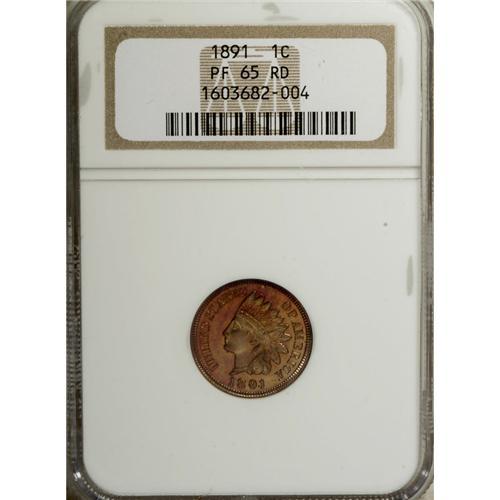 1891 1C PR65 Red NGC. A nice, reflective piece with in