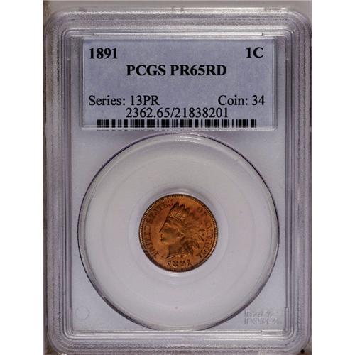 <B>1891<1C> PR65 Red PCGS.</B></I> Appealing crimson-orange surfaces with some cameo effect. Sharply struck with only a few feather tips exhibiting minor softness, and the four diamonds are fully defined. There are a few tiny flecks on each side, and a couple of obverse toning spots. Population: 14 in 65, 4 finer (4/06).