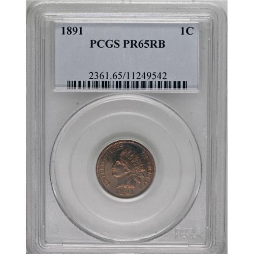 <B>1891 1C PR65 Red and Brown PCGS.</B></I> PCGS Population (27/1). NGC Census: (41/5). Mintage: 2,350. Numismedia Wsl. Price for NGC/PCGS coin in PR65: $500. (#2361)<BR><BR><b>Shipping:</b> Coins & Currency (<a target="_blank" href="http://www.heritageauctions.com/common/shipping.php">view shipping information</a>)