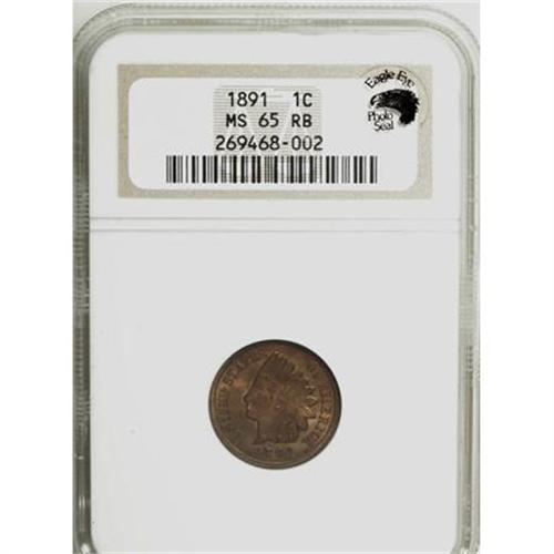 <B>1891 1C MS65 Red and Brown NGC.</B></I> Eagle Eye Photo Seal. NGC Census: (65/5). PCGS Population (18/0). Mintage: 47,072,352. Numismedia Wsl. Price for NGC/PCGS coin in MS65: $272. (#2179)<BR><BR><B>Coin Engraver:</B> James B. Longacre<BR><BR><b>Shipping:</b> Coins & Currency (<a target="_blank" href="http://www.heritageauctions.com/common/shipping.php">view shipping information</a>)