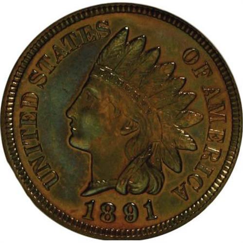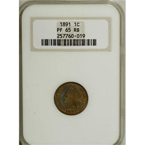 <B>1891 1C PR65 Red and Brown NGC.</B></I> NGC Census: (41/5). PCGS Population (27/1). Mintage: 2,350. Numismedia Wsl. Price for NGC/PCGS coin in PR65: $500. (#2361)<BR><BR><B>Coin Engraver:</B> James B. Longacre<BR><BR><b>Shipping:</b> Coins & Currency (<a target="_blank" href="http://www.heritageauctions.com/common/shipping.php">view shipping information</a>\)