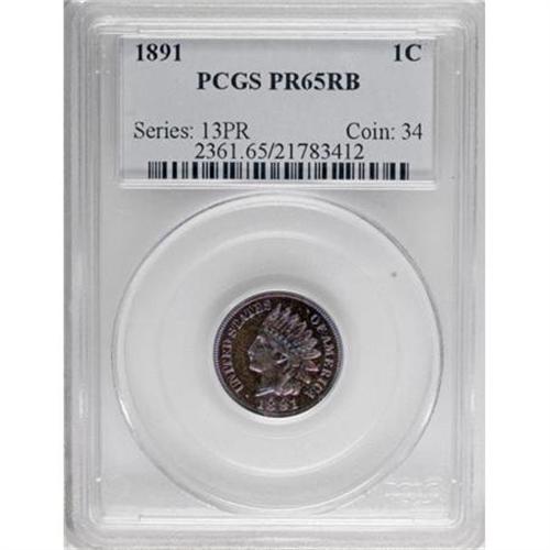 <B>1891 1C PR65 Red and Brown PCGS.</B></I> PCGS Population (27/1). NGC Census: (41/5). Mintage: 2,350. Numismedia Wsl. Price for NGC/PCGS coin in PR65: $500. (#2361)<BR><BR><B>Coin Engraver:</B> James B. Longacre<BR><BR><b>Shipping:</b> Coins & Currency (<a target="_blank" href="http://www.heritageauctions.com/common/shipping.php">view shipping information</a>)