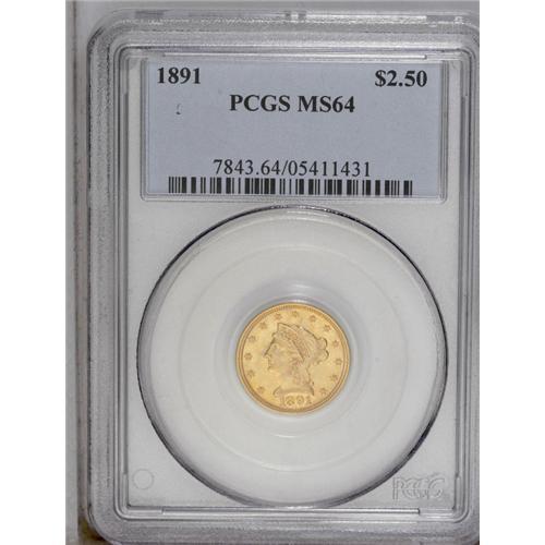 1891 $2 1/2 MS64 PCGS. Only 10,960 business strikes we 1891[$2 1/2] MS64 PCGS.