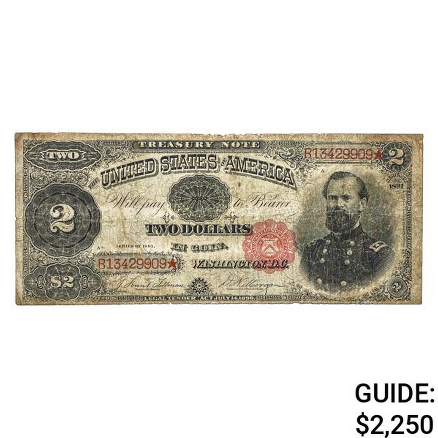 1891 $2 "MCPHERSON" TREASURY NOTE VERY FINE