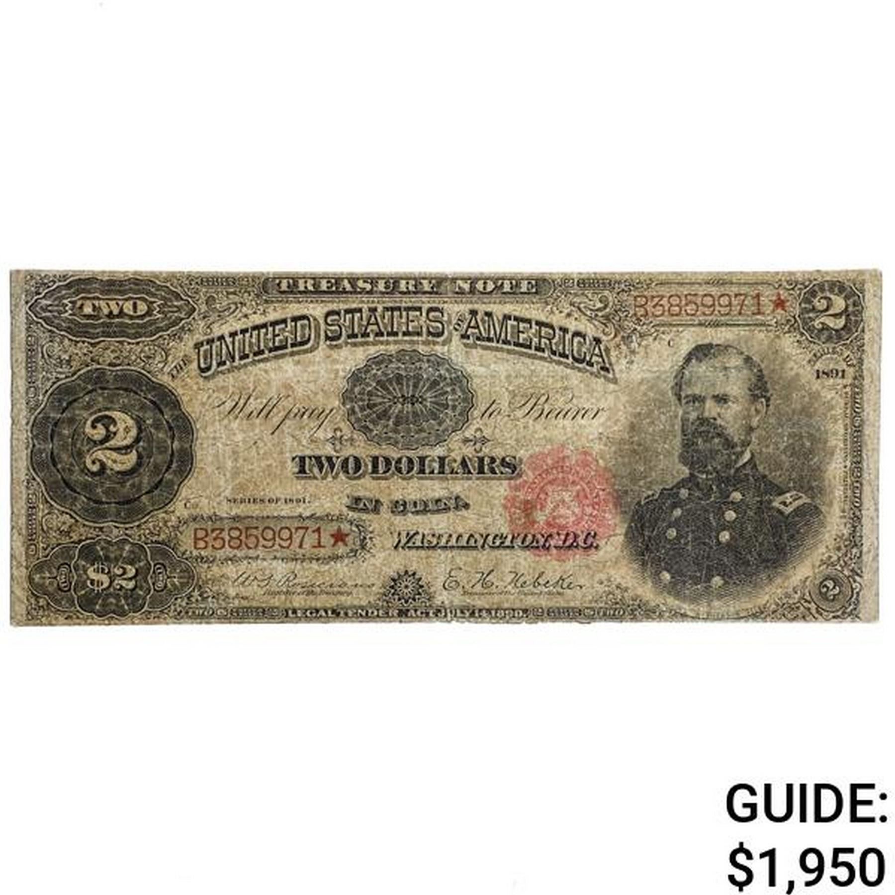 1891 $2 "MCPHERSON" TREASURY NOTE VERY FINE