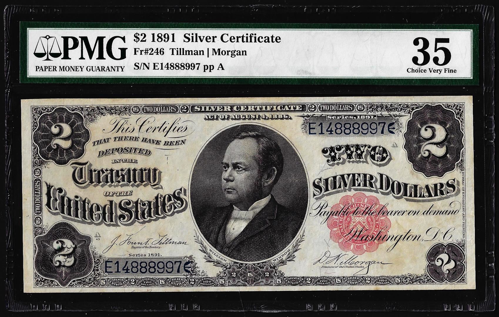 One 1891 $2 Silver Certificate Note Fr.246 PMG Choice Very Fine 35. PMG Certified.