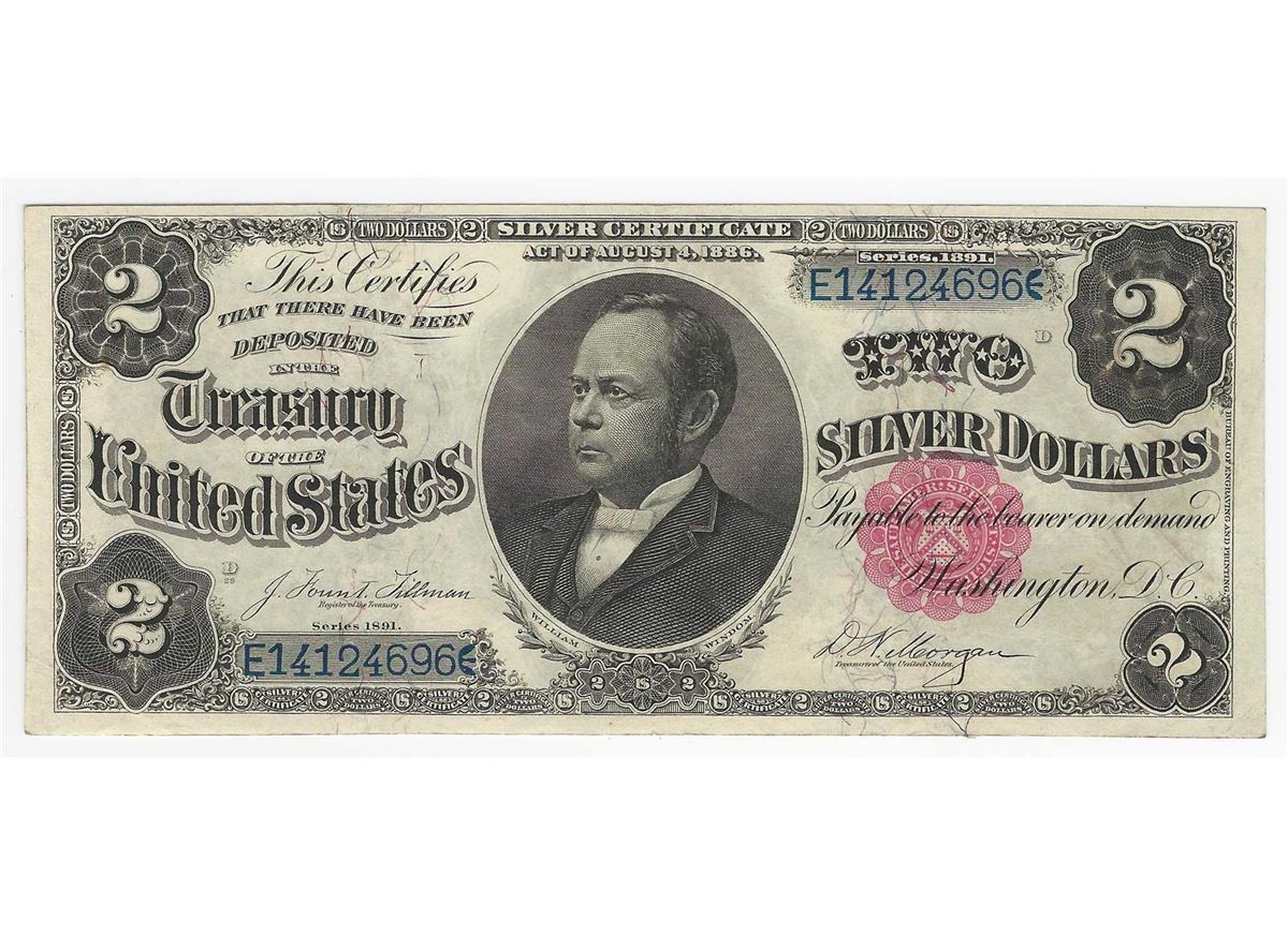 One 1891 $2 Silver Certificate Note William Windom.
