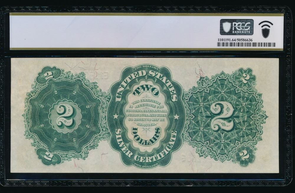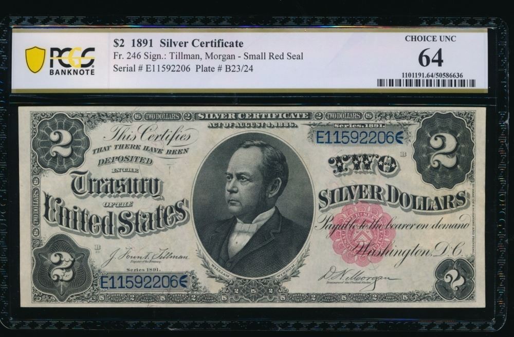 One 1891 $2 Silver Certificate PCGS 64.