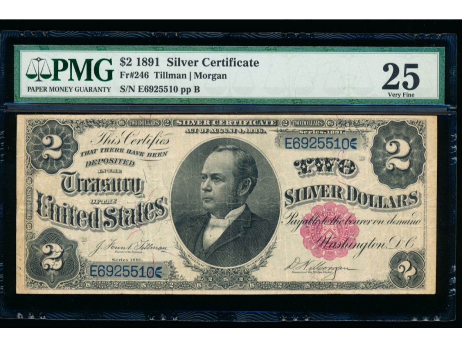 One 1891 $2 Silver Certificate PMG 25.