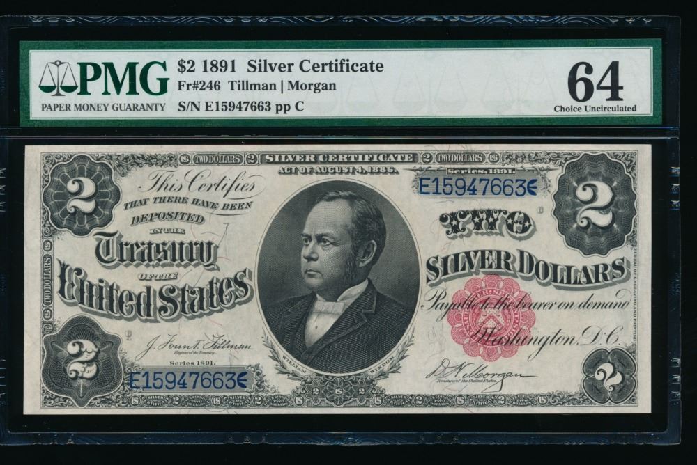 One 1891 $2 Silver Certificate PMG 64.