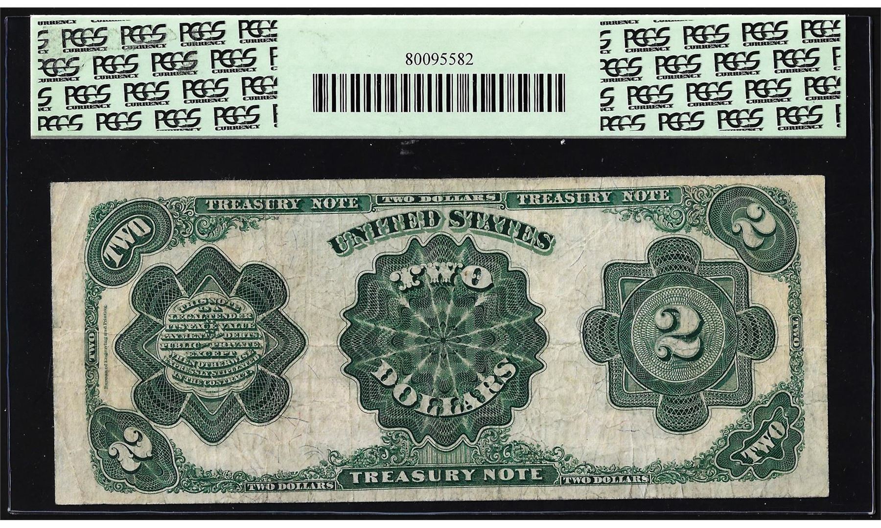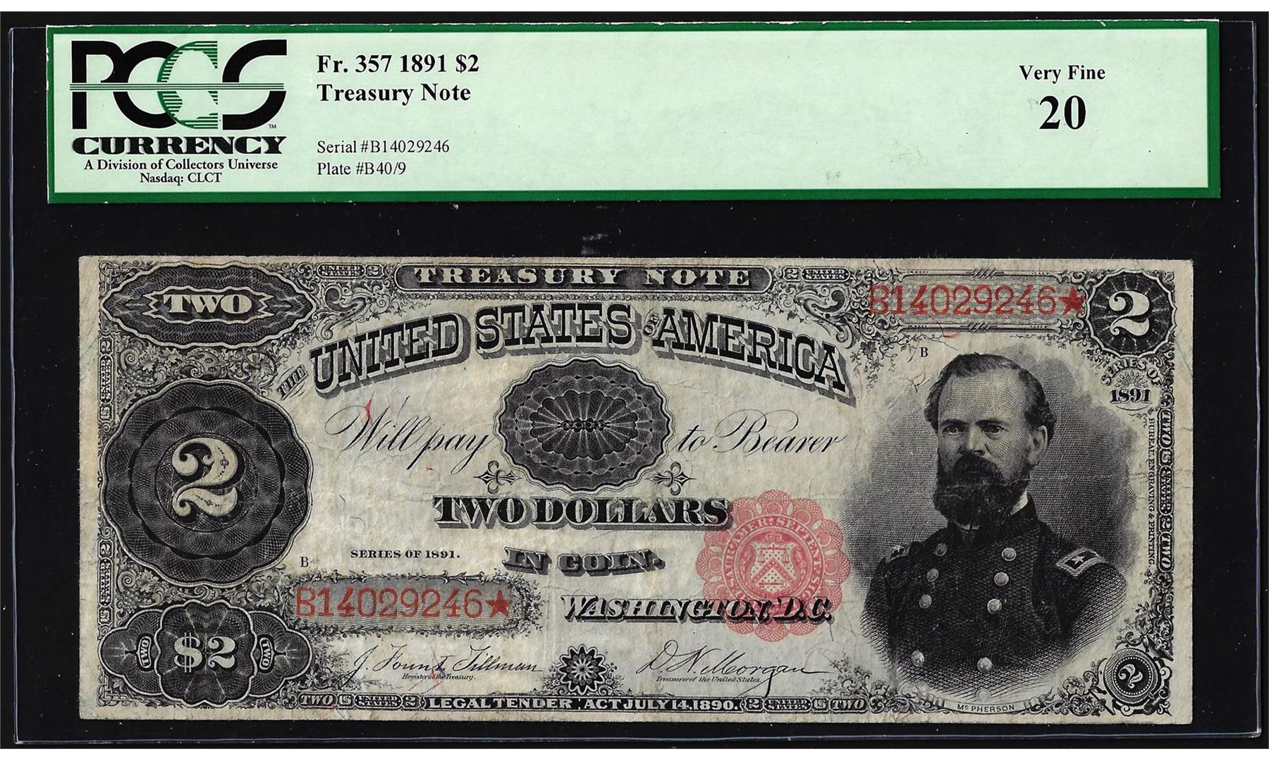 One 1891 $2 Treasury Note Fr.357 PCGS Very Fine 20. PCGS Graded.