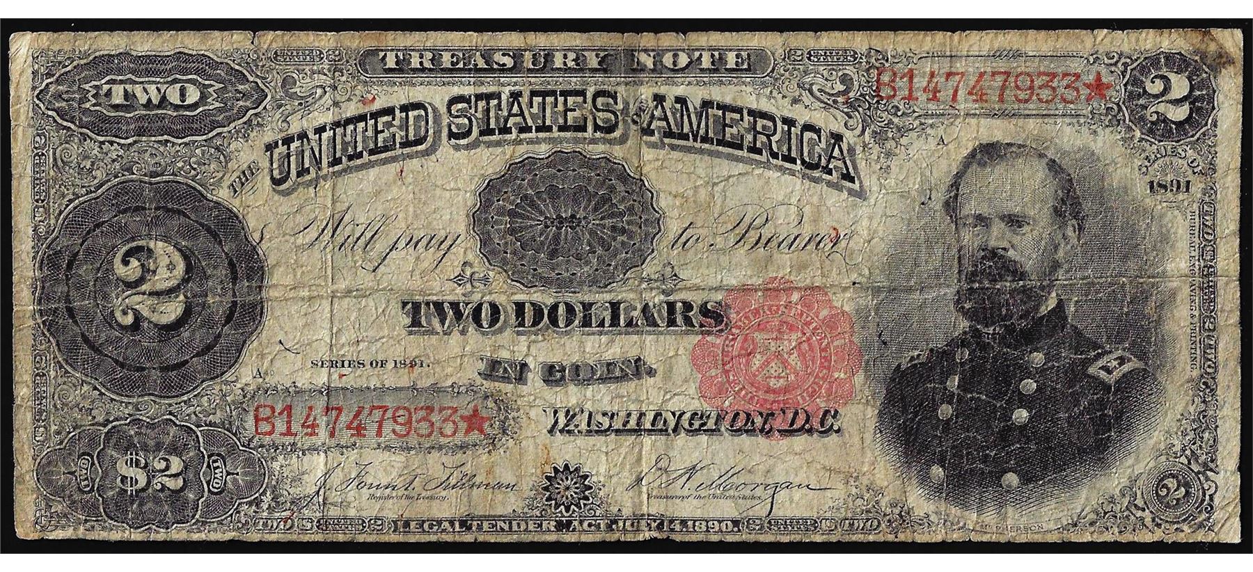 One 1891 $2 Treasury Note.