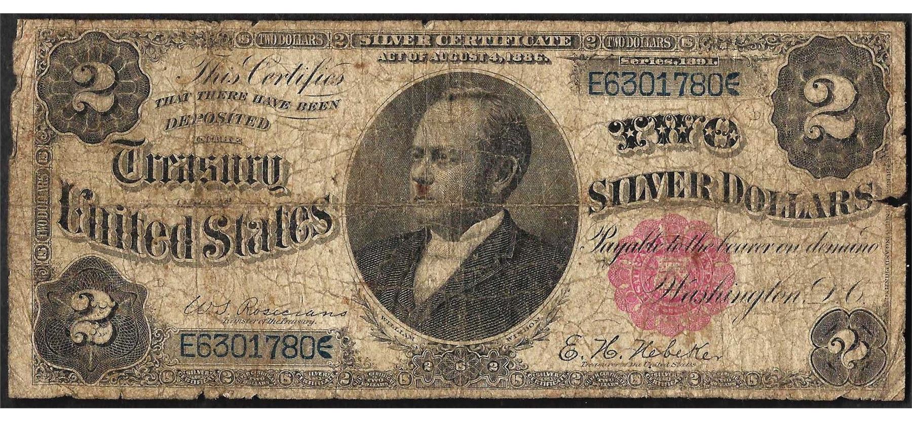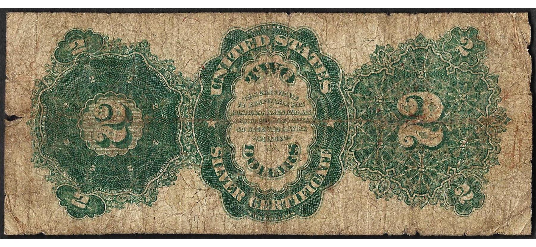 One 1891 $2 Windom Silver Certificate Note - Splits & Tears.