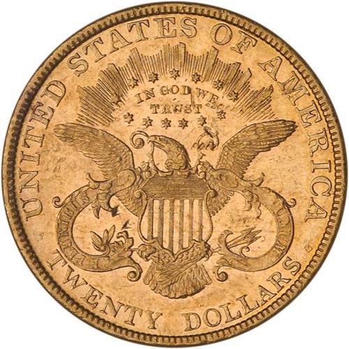 As the rumbling grew of an approaching economic tornado (that finally caused major damage to American business in 1893-95), the fear among government officials and bankers was that America would be completely drained of gold. By law, the Treasury department was required to keep $100 million worth of gold in its vaults as backing for the currency. This equated to a mere 5 million double eagles (to give you an idea how thin a line separated "healthy" from "unsound" financial conditions back in those days). With the Treasury nearing this critical level in 1891, production declined (at least at the Philadelphia mint, for the West Coast barely noticed the strain, as though it were on another planet entirely). Few survive from this low coinage, and this among the most attractively preserved with its flash and warm golden color.