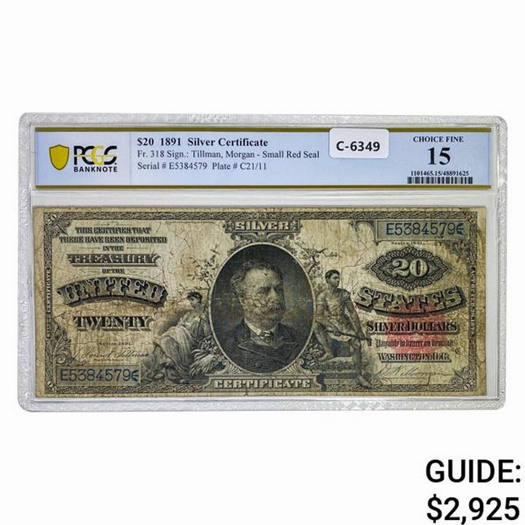 1891 $20 MANNING SILVER CERTIFICATE PCGS F-15