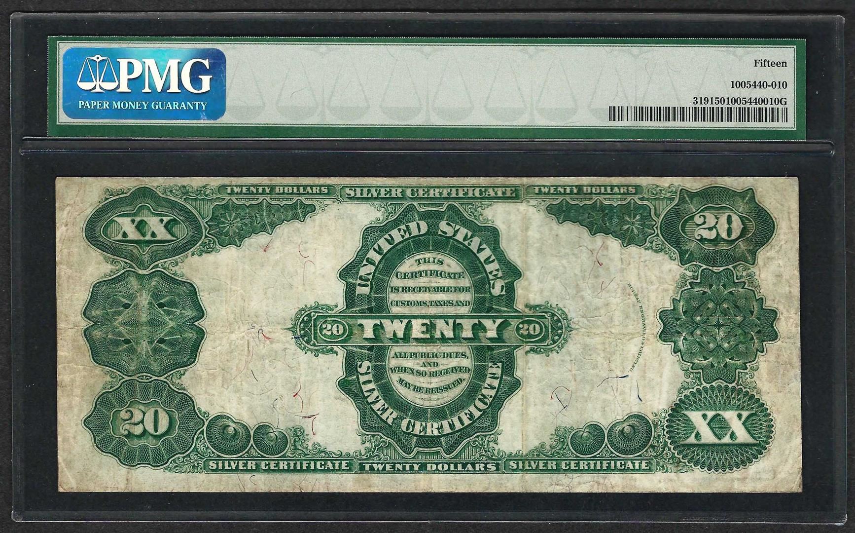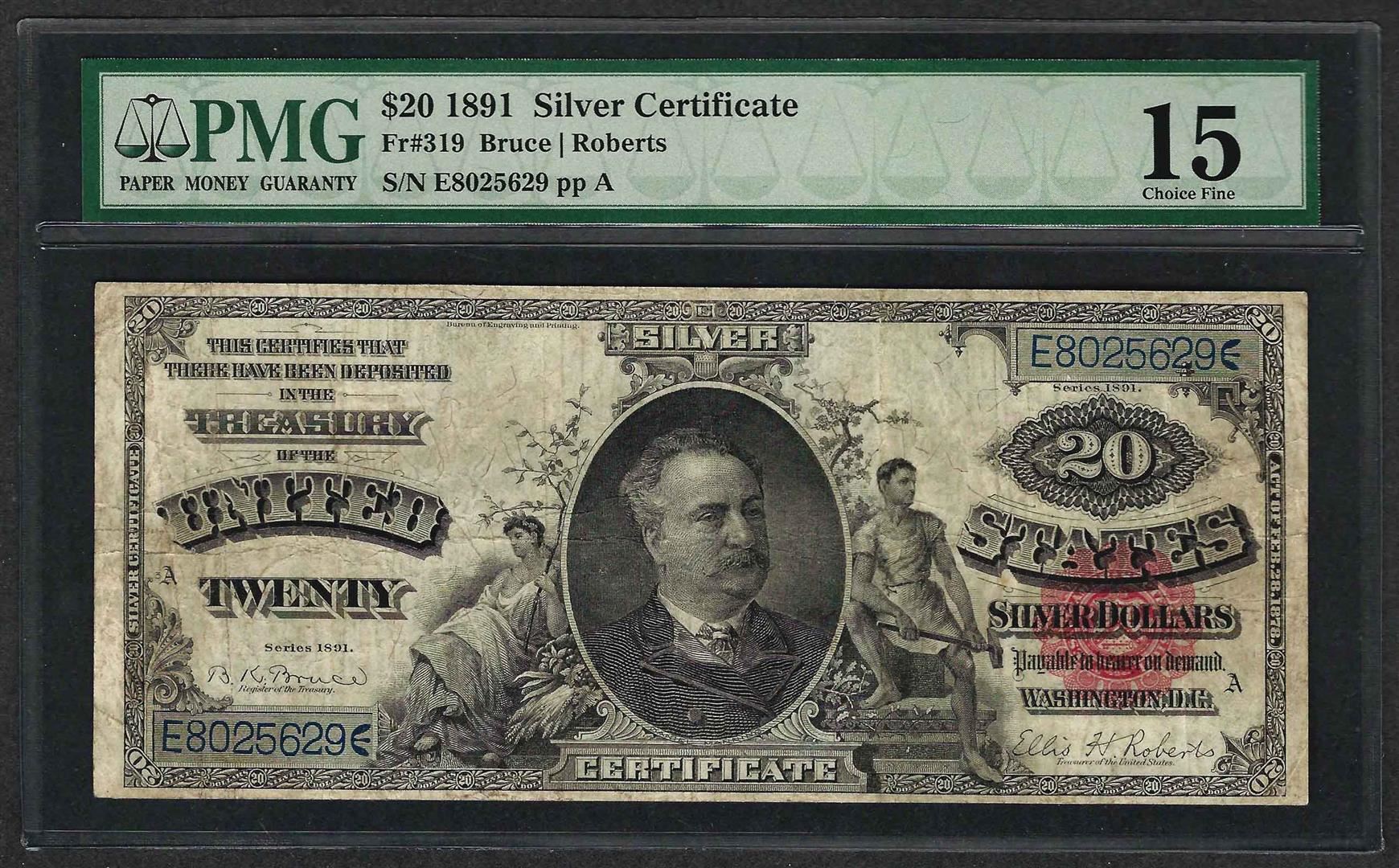 One 1891 $20 Silver Certificate Note Fr.319 PMG Choice Fine 15. PMG Certified.