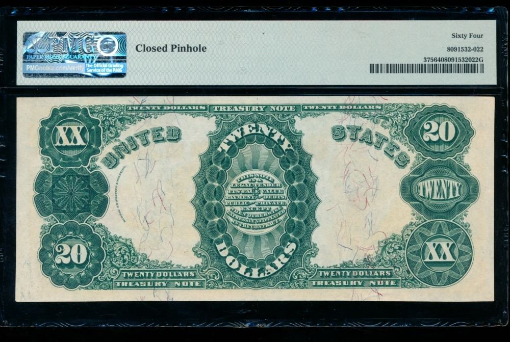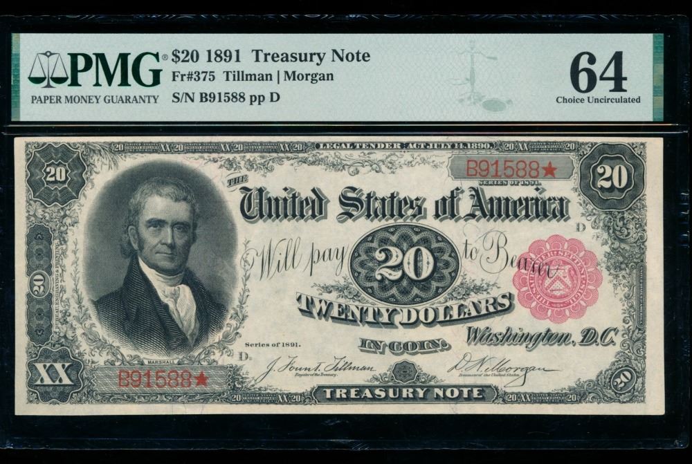 One 1891 $20 Treasury Note PMG 64.