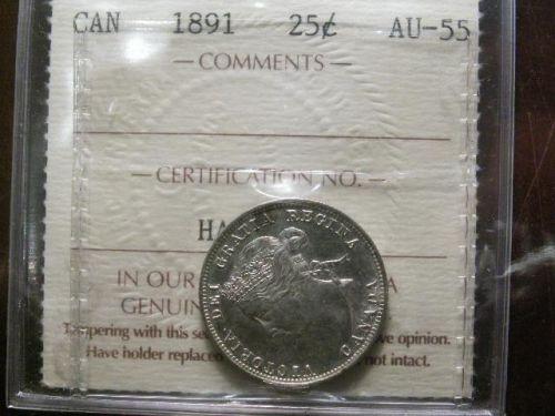 1891 25¢ ICCS AU55. Brilliant with lots of luster. Mirror-like finish.