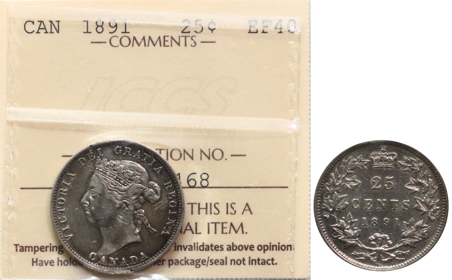 1891 25¢ ICCS Extra Fine-40 Well defined with strong details. Remaining lustre throughout