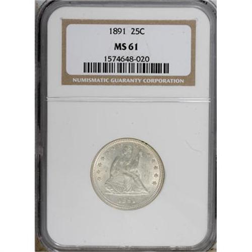 1891 25C MS61 NGC. NGC Census: (29/363). PCGS Popu