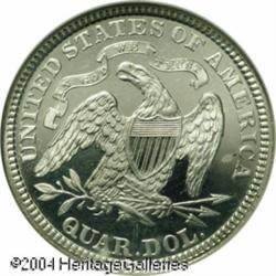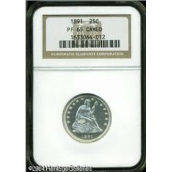 1891 25C PR65 Cameo NGC. A brilliant Gem with fros <B>1891 25C PR65 Cameo NGC.</B></I> A brilliant Gem with frosty devices that exhibit strong contrast with the smooth mirrored fields. A sharply struck representative of the final proof issue of the long-running series. A mere 600 pieces were struck. Population: 6 in 65 Cameo, 13 finer (10/04). <BR><BR><B>Important notice:</B> Heritage usually auctions material at the rate of 200-250 lots per hour. On some occasions eBay Live bid software or the Internet may not be able to keep up with the pace of the auction. We recommend placing a realistic absentee bid now as insurance to avoid disappointment. Occasionally the auctioneer may eliminate or reject an eBay Live bid, and the auctioneer may also reopen a lot after the close of the eBay live bidding (usually because we missed an audience bid), and may reject your bid even if it shows you as the winning bidder. By bidding via eBay Live, you agree that Heritage may award the lot to another bidder at its sole discretion under the circumstances described above or any other reasonable circumstances. Since eBay bids are not shown to us until we open the lot on the floor, we treat those bids just like floor bids. In most cases the floor responds before the eBay bid is presented to us, due to Internet lag time, so for consistency we have made it a policy that floor bids are always considered first over tie eBay live bids. Also please note that all Heritage lots purchased through eBay Live carry a 20% Buyer's Premium. Please make sure you read the Terms and Conditions before you bid. This lot is being auctioned in conjunction with a live floor auction by Heritage Galleries & Auctioneers. All final auction and invoice information will be supplied by Heritage Galleries & Auctioneers, and all other information should be considered preliminary. Lot:5903