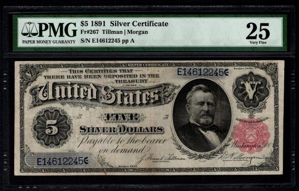 One 1891 $5 Educational Silver Certificate PMG 25.