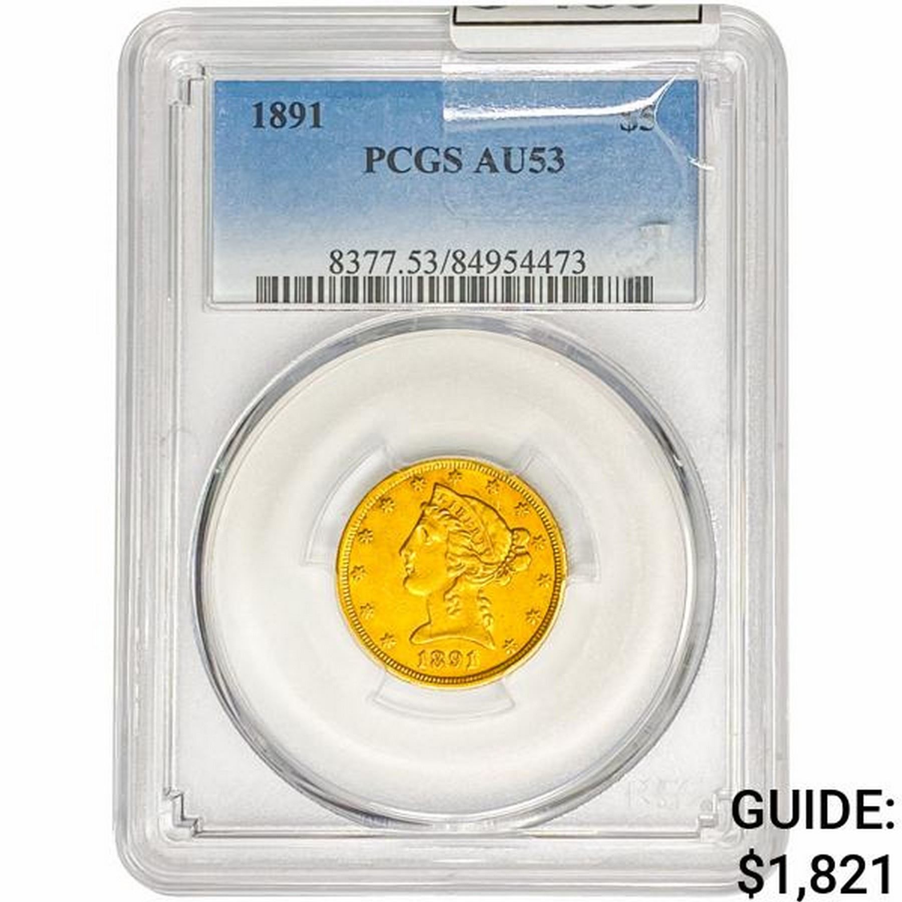 1891 $5 Gold Half Eagle PCGS AU53