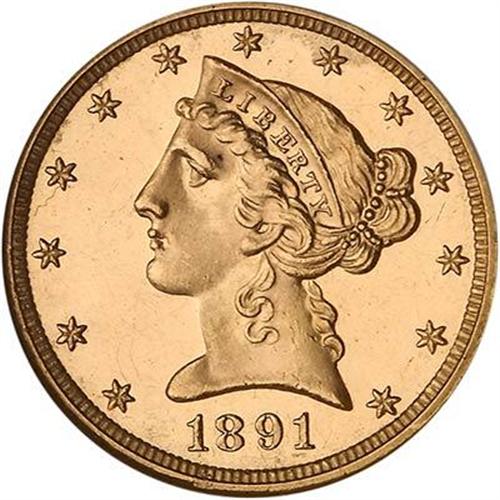 This is an amazing Proof half eagle that was triple-struck with rotation between strikes on the reverse. The obverse does not show any evidence of the extra impressions from the die. The first and second impression of the design on the reverse are evident in a counterclockwise position relative to the third impression. In addition to the importance of this example from the extra strikes, it is also a rarity, one of just 53 examples coined in Proof format. Further, the 1891 half eagle is also a lower mintage issue in business strike, meaning that the overall rarity is an important factor when considering the demand of this issue.